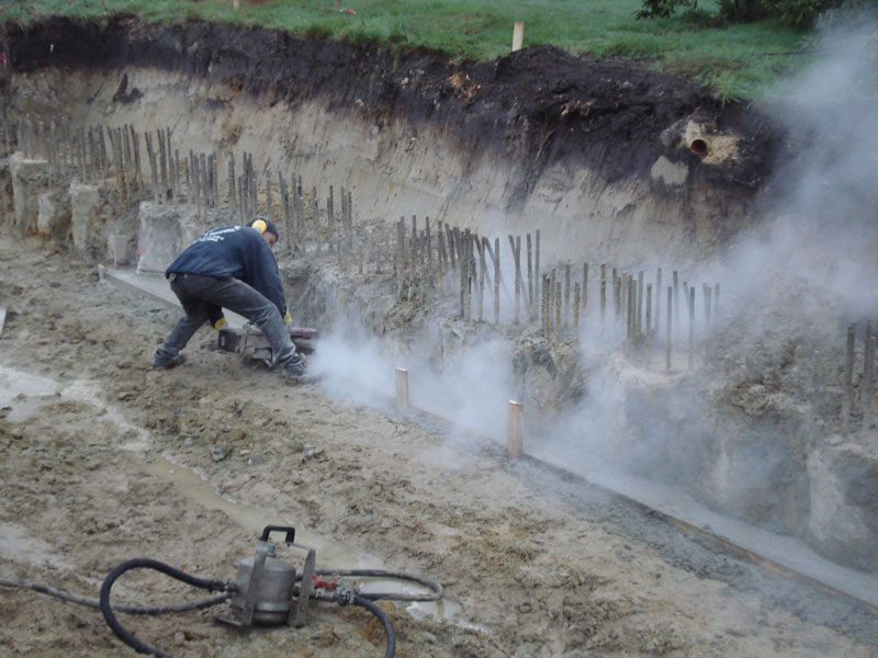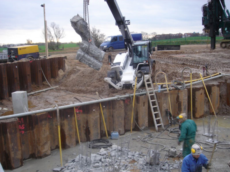 Einschneiden der Pfähle oberhalb der Sauberkeitsschicht, wenn z. B. keine Sauberkeitsschicht eingebaut wird oder nach ZTV- Ing. gearbeitet werden muss.