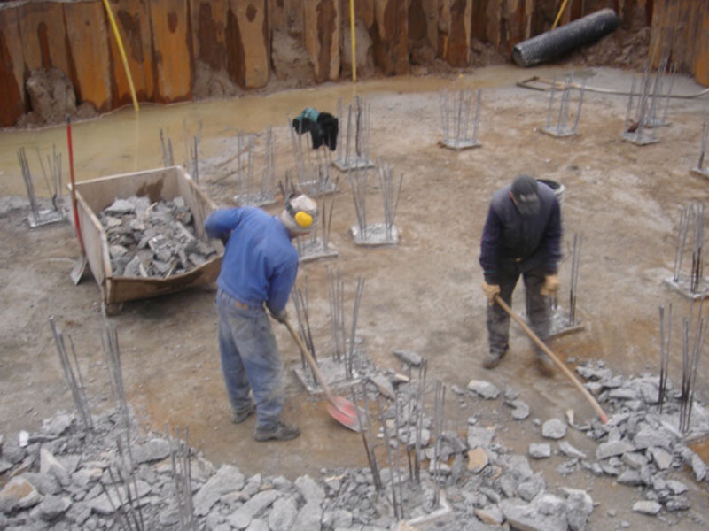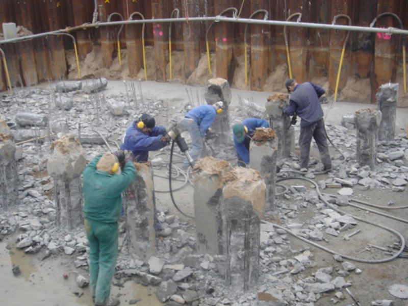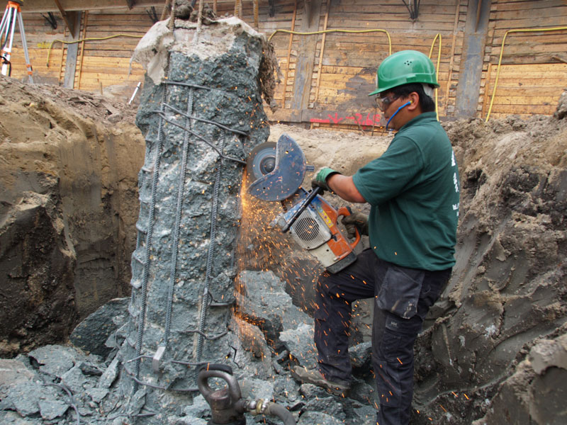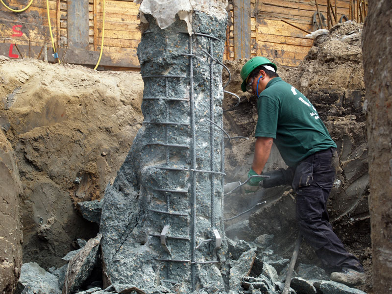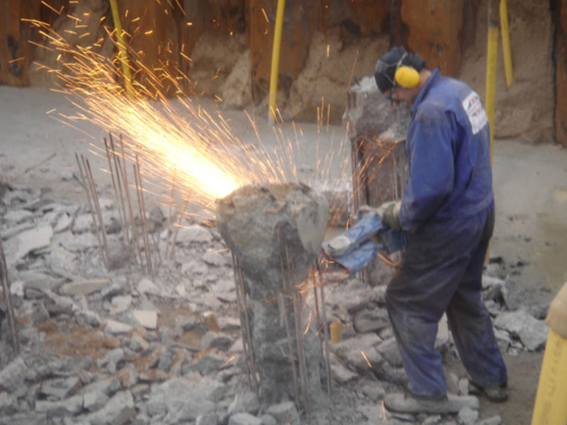 Einkürzen der Anschlussbewehrung auf die statisch notwendige Länge. Entfernen der Wendelbewehrung.